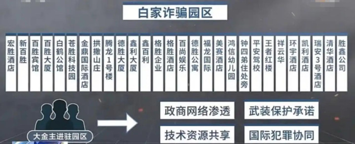 短短几年间,白家通过政商网络渗透、武装保护承诺等手段,迅速建立了百胜、苍胜、腾龙、鑫百利等41个电诈园区,成为缅北地区起步晚但发展最快的地方家族势力。